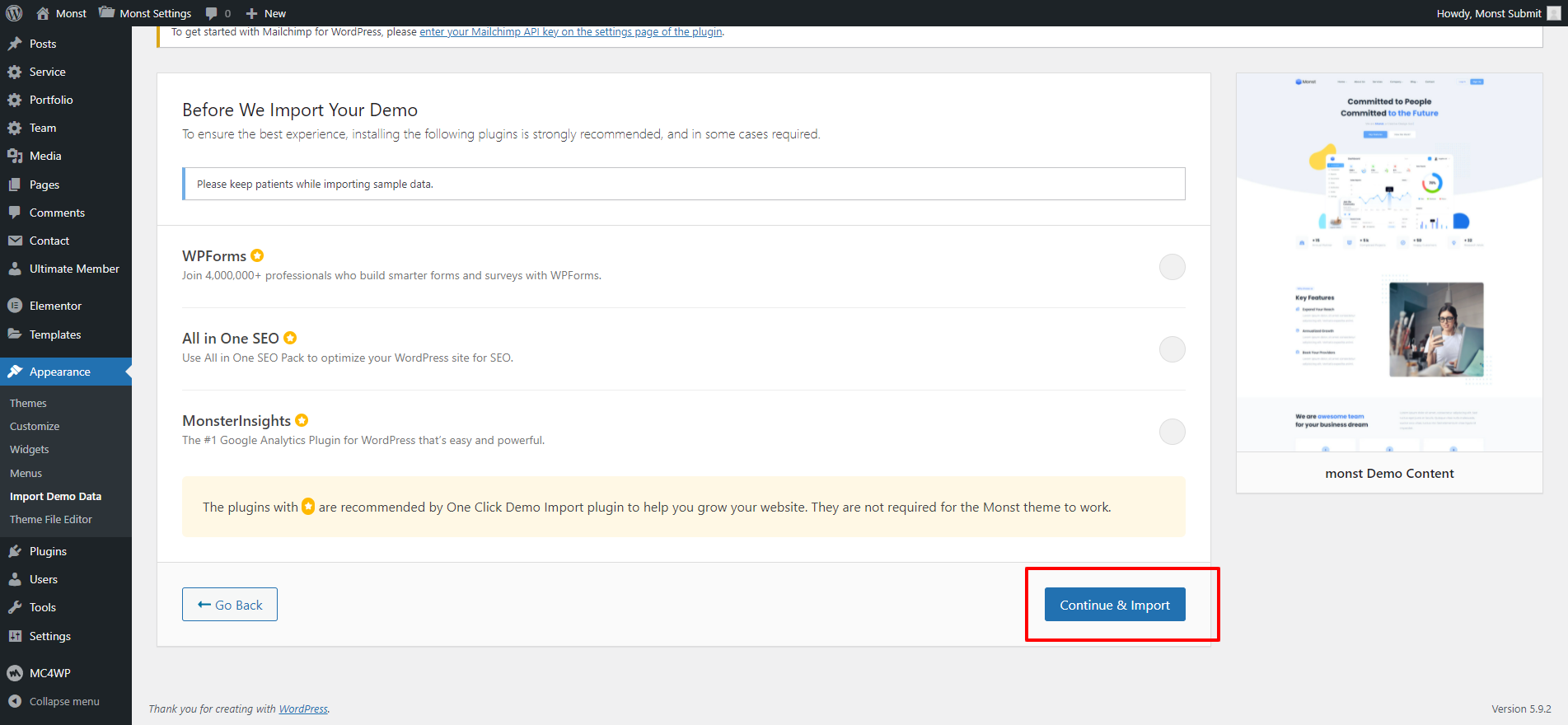 To Import Demo Content